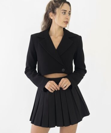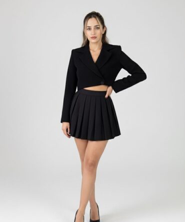 A sleeveless, light pink set which is made of a smooth fabric. The overall look is chic and summery, perfect for a sunny day!